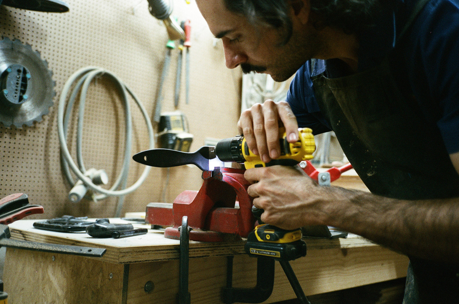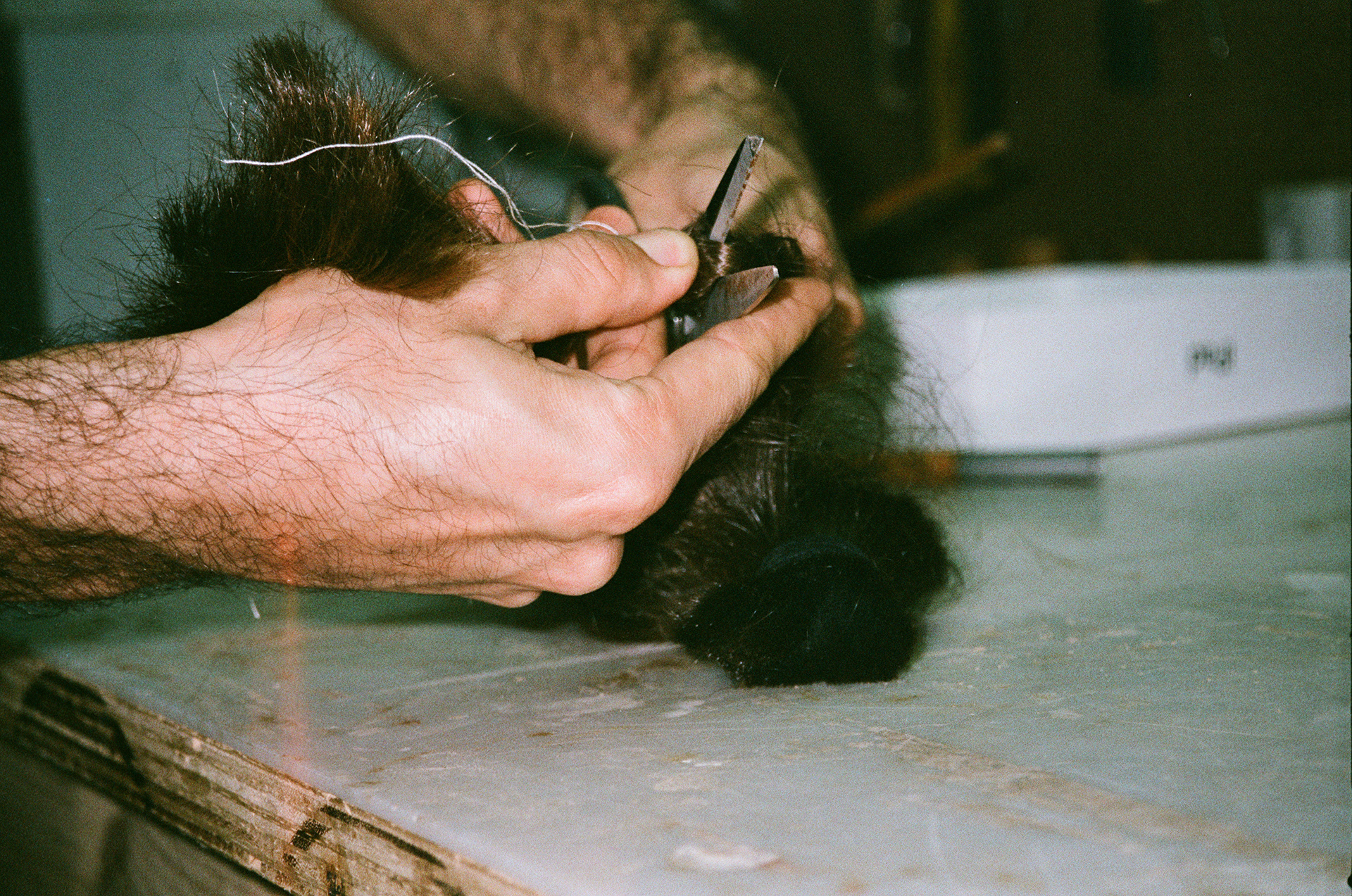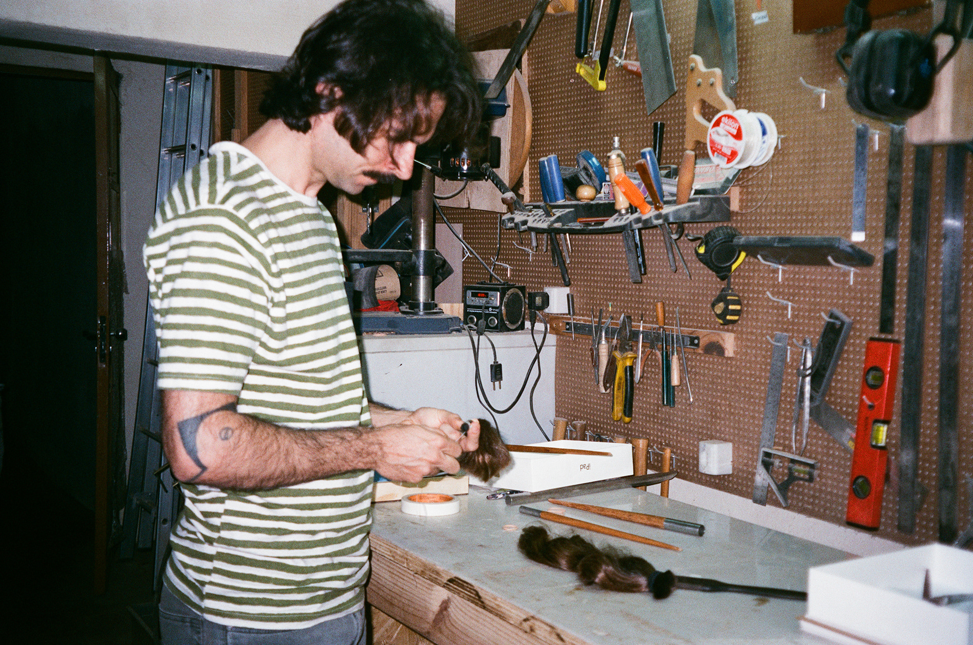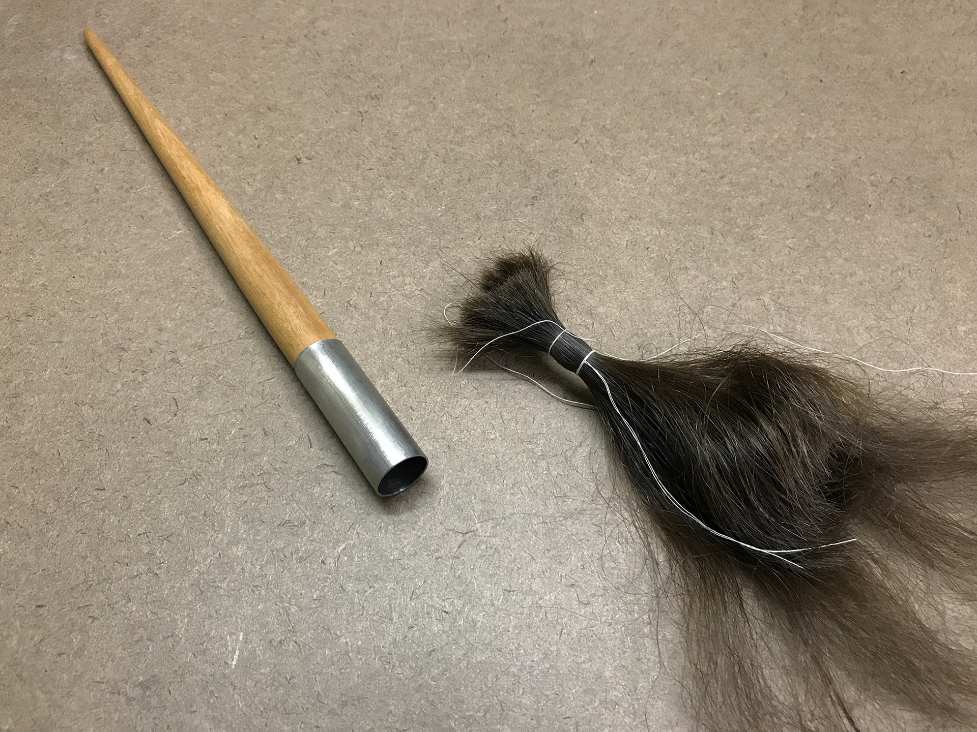 Fabricação de pincéis para a obra "Inútil", da artista Jade Marra, feitos com os cabelos de Luíza.